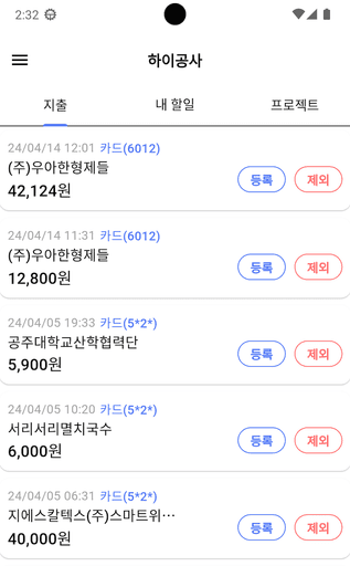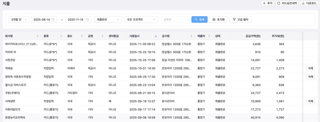 현장에서 카드 내역, 세금계산서를 불러와 간편하게 비용을 관리할 수 있어요.